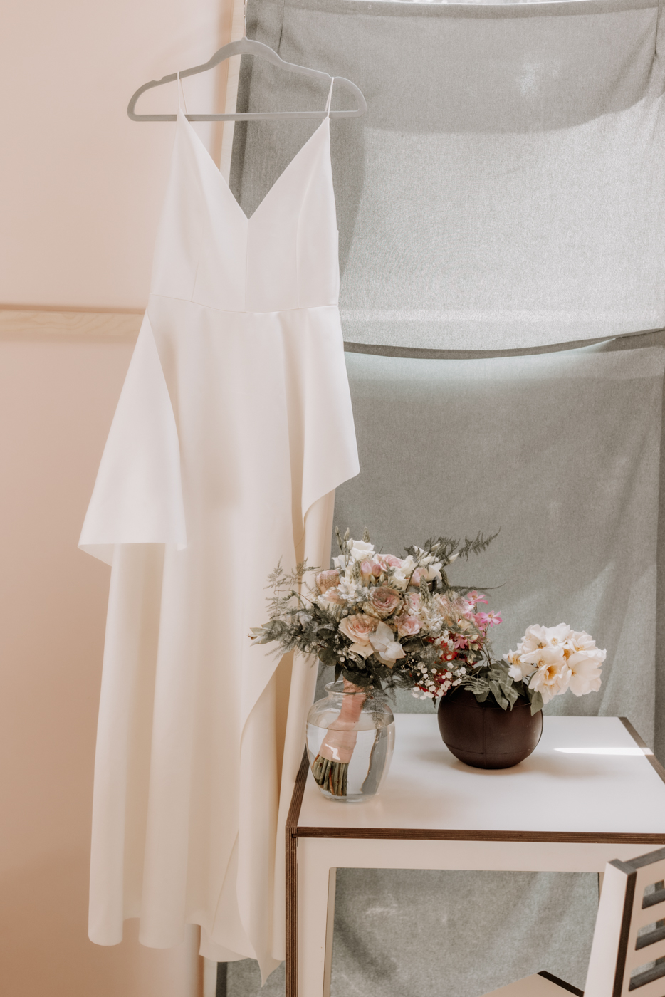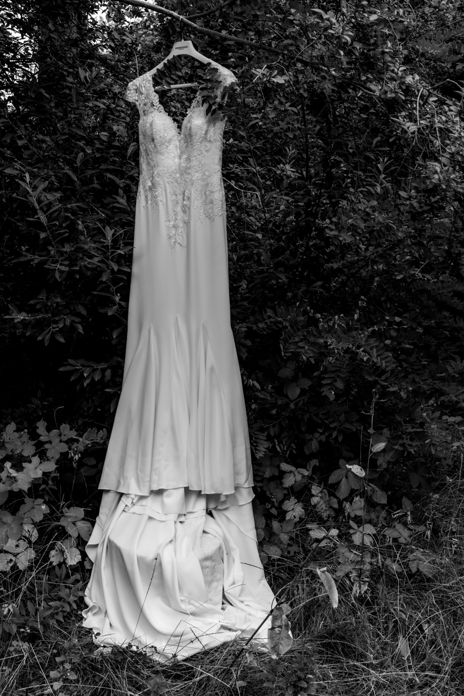Tijdens de bruidsreportage maak ik zo veel mogelijk foto's van details. Denk hierbij bijvoorbeeld aan het boeket, maar ook corsages, gedekte tafels, versieringen en natuurlijk de bruidstaart zet ik op de foto! En wat dacht je van de jurk op een hanger?