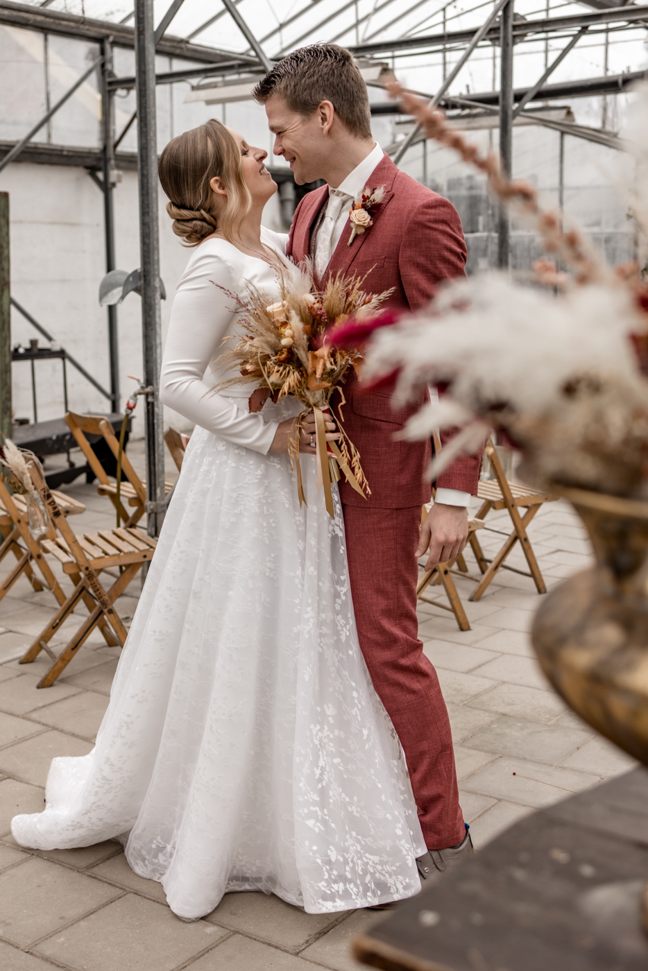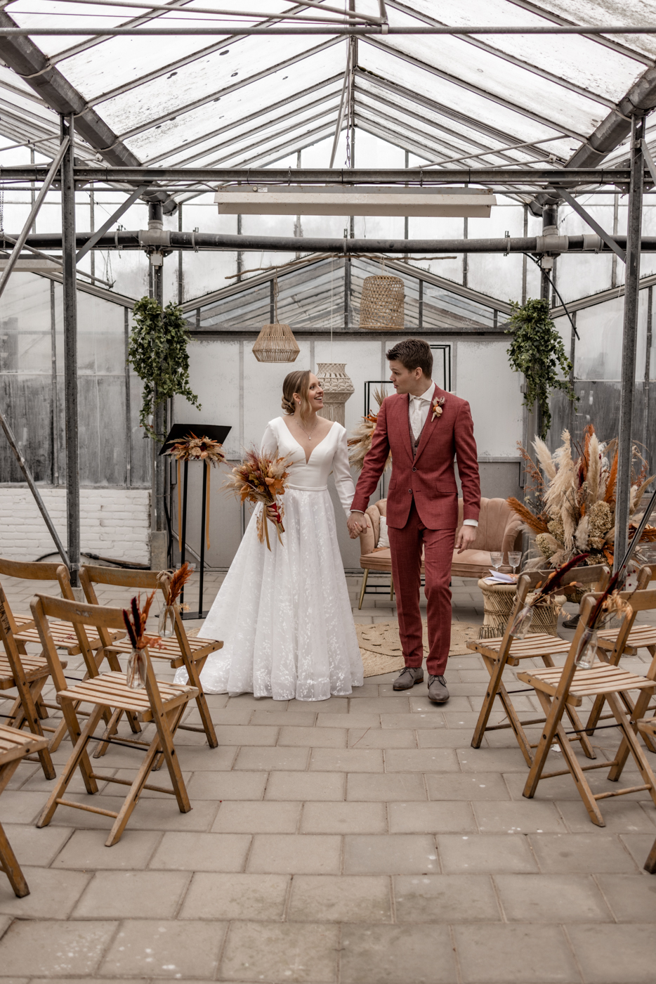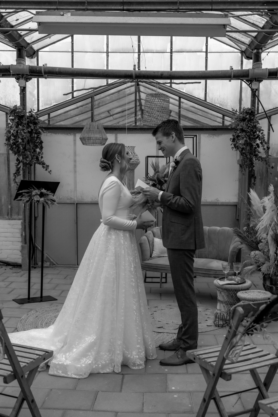 Fotoshoot van romantisch bruidspaar in een oude kas!Irene van de Wege26 mrt 20231 minuten om te lezenMooie Martine & Sander tijdens de ceremonie in een kas!