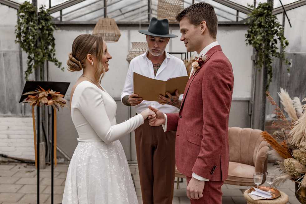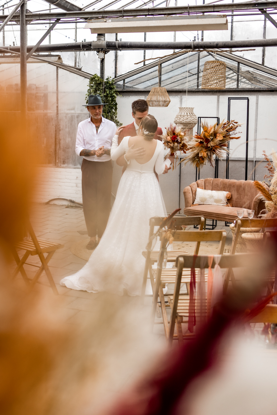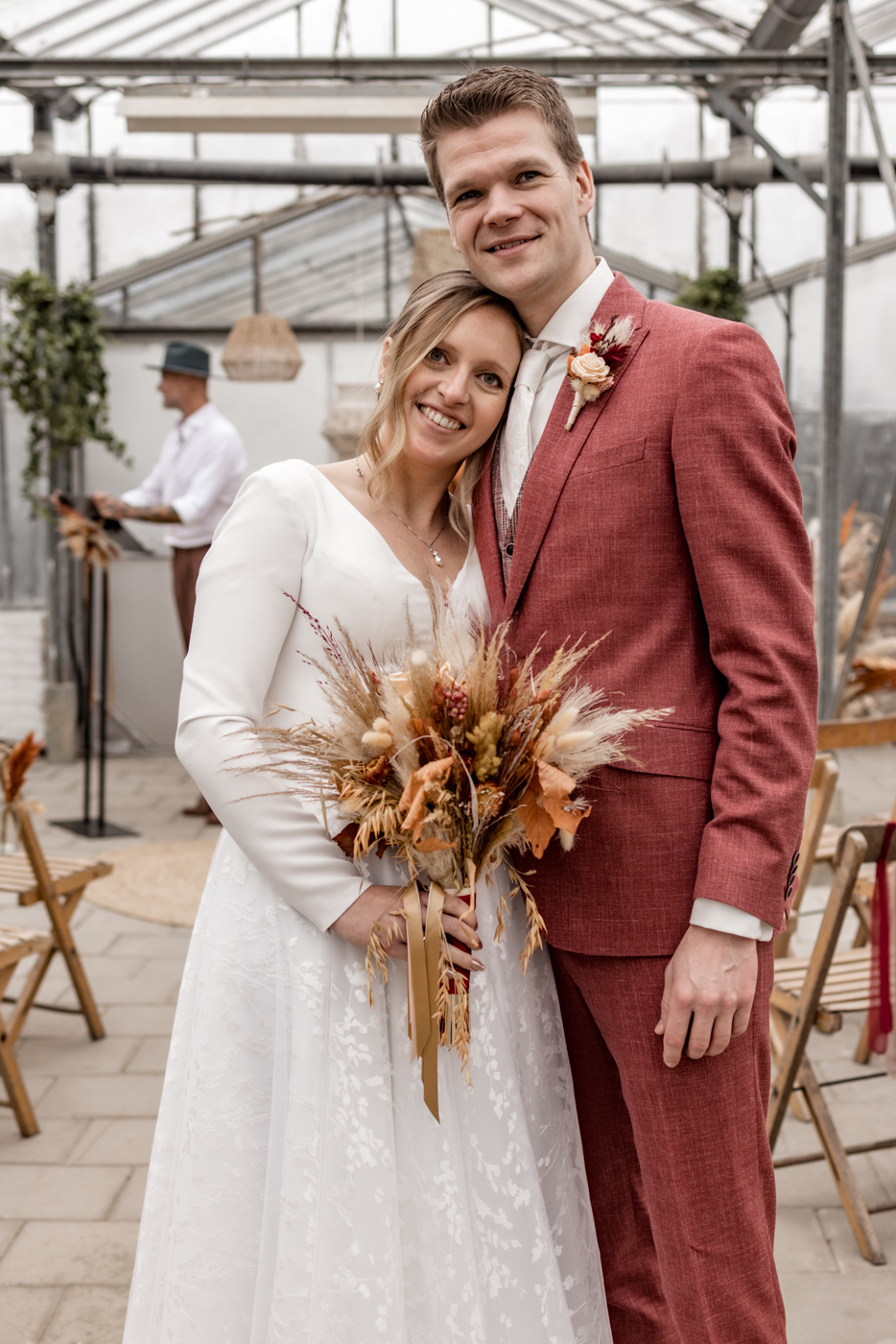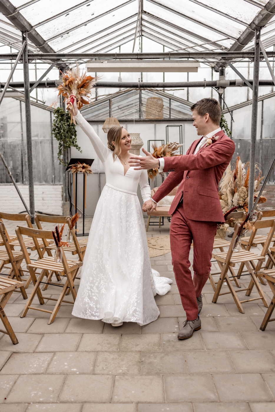 Fotoshoot van romantisch bruidspaar in een oude kas!Irene van de Wege26 mrt 20231 minuten om te lezenMooie Martine & Sander tijdens de ceremonie in een kas!